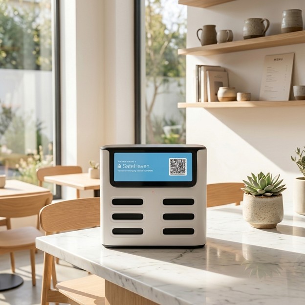Built with simplicity and reliability in mind, the SafeHaven station creates a seamless charging experience for both users and venues.